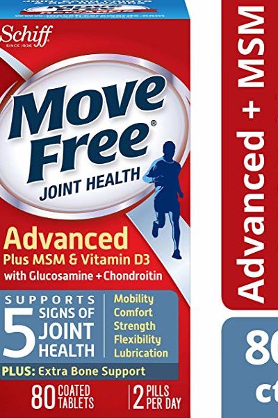 Move Free Advanced Plus含有氨基葡萄糖和软骨素的MSM&D3关节健康补充剂,支持流动性,舒适性,灵活性和关节润滑,80计数